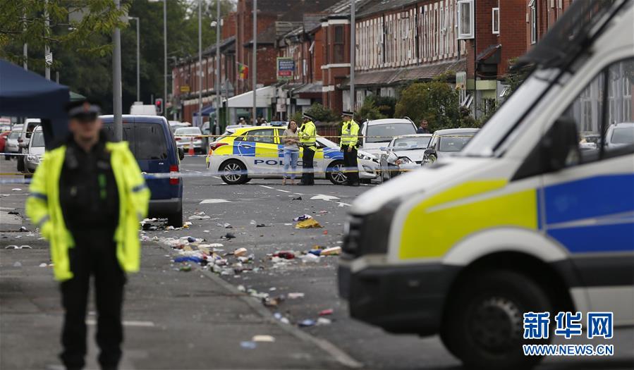 8月12日,在英国曼彻斯特,警方抵达枪击现场。新华社发(埃德·赛克斯摄)