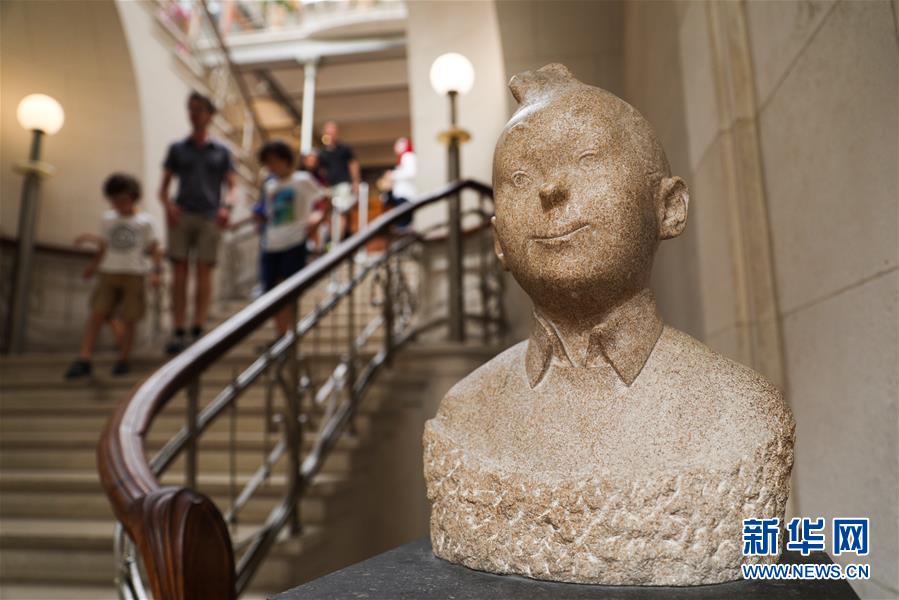 这是8月12日在比利时首都布鲁塞尔的比利时漫画博物馆拍摄的丁丁漫画形象雕塑。 比利时是丁丁和蓝精灵等著名漫画形象的诞生地。比利时漫画博物馆位于布鲁塞尔市中心,展示着漫画艺术的发展历程、漫画家作品以及各类漫画展览,被称为“漫画爱好者的天堂”。 新华社记者郑焕松摄