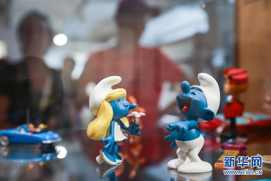 这是8月12日在比利时首都布鲁塞尔比利时漫画博物馆拍摄的蓝精灵玩偶。 比利时是丁丁和蓝精灵等著名漫画形象的诞生地。比利时漫画博物馆位于布鲁塞尔市中心,展示着漫画艺术的发展历程、漫画家作品以及各类漫画展览,被称为“漫画爱好者的天堂”。 新华社记者郑焕松摄