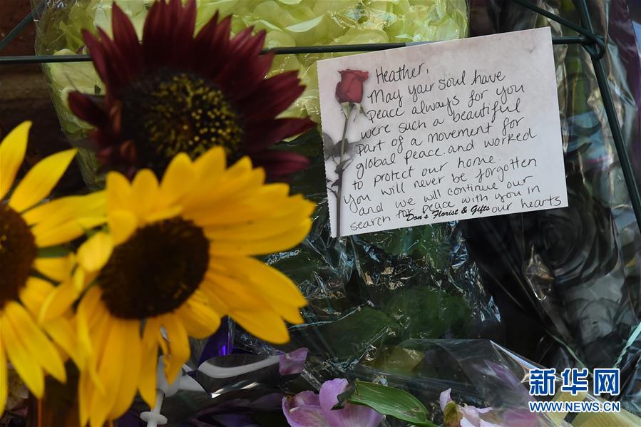 8月10日,在美国弗吉尼亚州夏洛茨维尔,民众留言悼念暴力事件受害者。 2017年8月12日,美国夏洛茨维尔发生暴力事件,一名白人至上主义者驾车冲撞抗议者,造成一死多伤。 新华社记者杨承霖摄