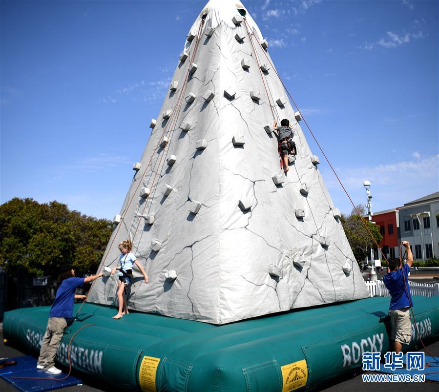 8月11日,在美国旧金山湾区,人们在“脸书节”的游戏区游玩。 当日,旧金山湾区脸书园区举行“脸书节”,人们在活动中欣赏文艺表演,品尝美食,乘坐游乐设施等,活动收入将捐给慈善团体。 新华社记者吴晓凌摄