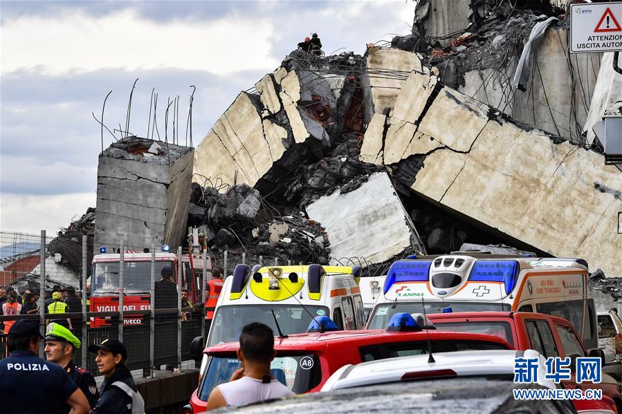 这是8月14日在意大利北部热那亚地区拍摄的大桥垮塌现场。 新华社发(阿尔贝托·林格里亚摄)
