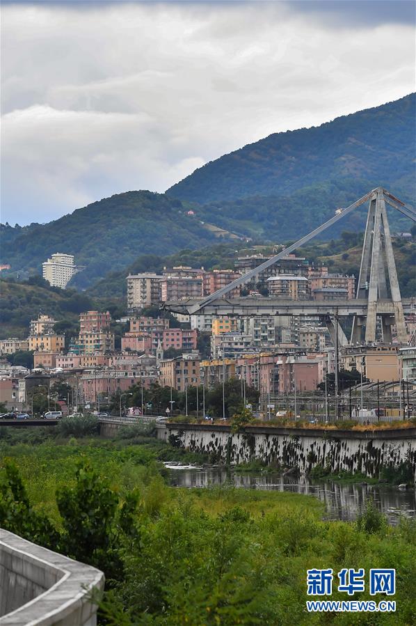这是8月14日在意大利北部热那亚地区拍摄的大桥垮塌现场。新华社发(阿尔贝托·林格里亚摄)