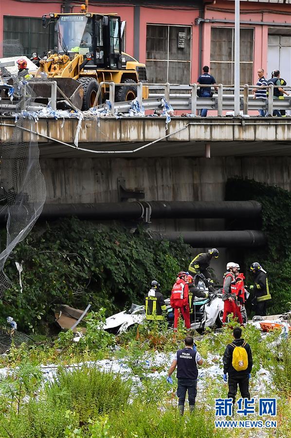 这是8月14日在意大利北部热那亚地区拍摄的大桥垮塌现场。 新华社发(阿尔贝托·林格里亚摄)