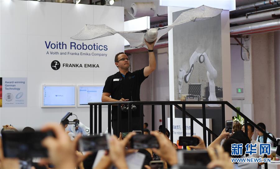 8月15日,参展商在机器人大会上展示一款模仿蝙蝠的仿生机器人。当日,2018世界机器人大会在北京亦创国际会展中心开幕。大会由论坛、博览会、大赛、地面无人系统活动四大板块组成,来自16个国家和地区的选手将参加机器人大赛。新华社记者 张晨霖 摄