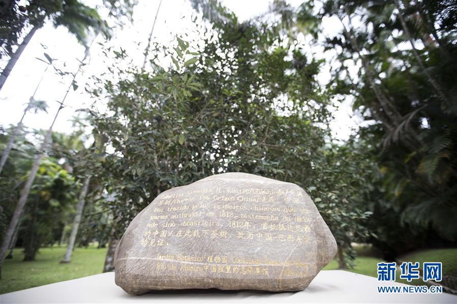 这是8月15日在巴西里约热内卢植物园内拍摄的来自中国福建的华安石纪念牌。牌上写着:“1812年,首批抵达巴西的中国人在此栽下茶树,此为中国-巴西友谊的见证。”为庆祝首个巴西“中国移民日”,中国驻里约总领馆和里约植物园15日为“首批中国茶农抵达巴西纪念牌”举行了揭牌仪式,希望这块纪念牌让更多人了解和记住中巴两国源远流长的友谊。今年6月,巴西总统特梅尔正式签署法令,将每年的8月15日设立为“中国移民日”。新华社记者 李明 摄