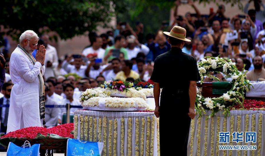 8月17日,在印度首都新德里,印度总理莫迪(前左)出席印度前总理瓦杰帕伊的葬礼。 新华社发
