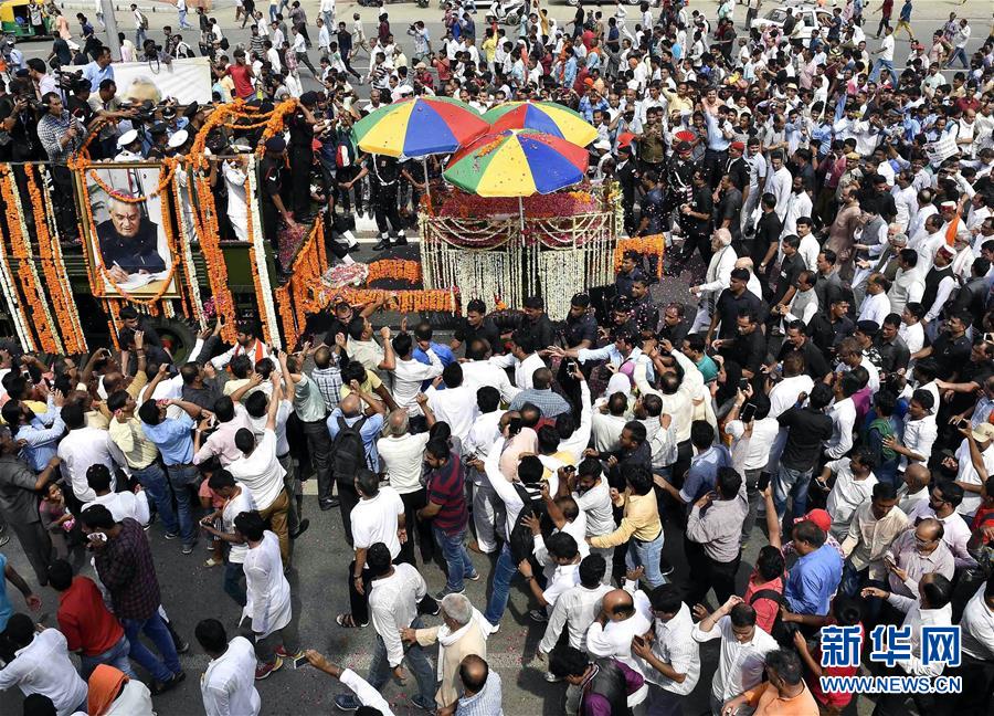 8月17日,在印度首都新德里,人们参加印度前总理瓦杰帕伊的葬礼。 新华社发