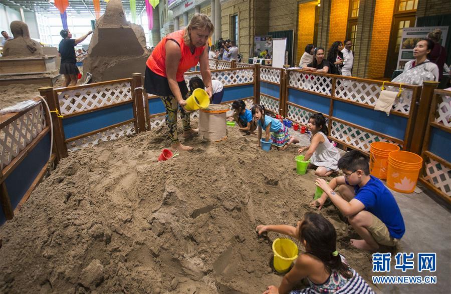 8月17日,在加拿大多伦多,小朋友在国家展览会儿童活动区学习沙雕制作。 当日,为期18天的2018加拿大国家展览会在多伦多开幕。展览会设有军事、农业、科技、文化等内容的展览与表演,以及商品展销、嘉年华娱乐活动等。 新华社发(邹峥摄)