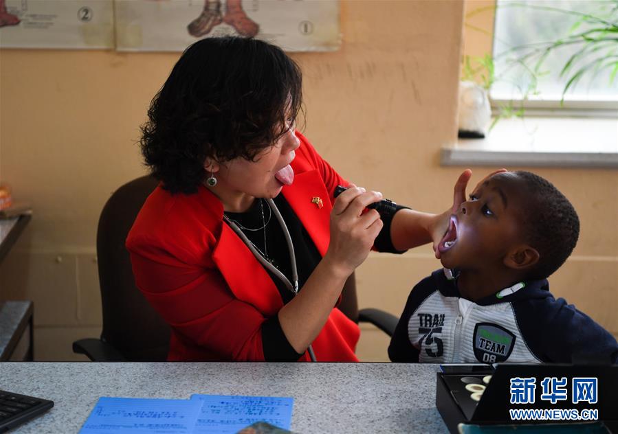 8月17日,潘连雪在肯尼亚内罗毕的诊所内为小患者做检查。罗占良、潘连雪夫妇在肯尼亚首都内罗毕经营一家中医诊所,每天来预约治疗的患者络绎不绝。他们在肯尼亚行医20多年,让越来越多的非洲人认识中医、了解中医、接受中医。潘连雪说,“因为中医,我留在了肯尼亚;因为中医,我在这里认识了我先生。同时,很多患者因为中医,对中国产生了浓厚的兴趣。每想到这些,我的成就感就油然而生”。新华社记者 李琰 摄
