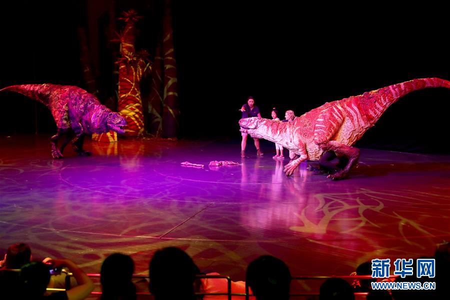 8月19日,《恐龙动物园》在上海儿童艺术剧场上演。8月17日至19日,由澳大利亚环球剧团带来的科普互动儿童剧《恐龙动物园》在上海儿童艺术剧场上演,为孩子们打造了解史前生物与大自然奥秘的剧场课堂。新华社记者 刘颖 摄