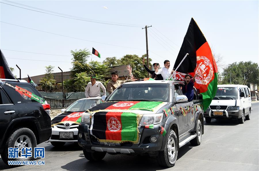 8月19日,在阿富汗首都喀布尔,当地民众在街头挥舞国旗,庆祝国家独立99周年。当日,阿富汗各界举行活动,庆祝国家独立99周年。1919年8月19日,阿富汗摆脱英国殖民统治获得独立,并宣布每年的8月19日为独立日。新华社记者 代贺 摄