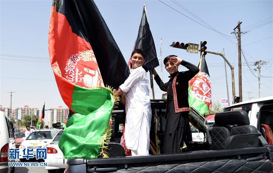 8月19日,在阿富汗首都喀布尔,当地民众在街头挥舞国旗,庆祝国家独立99周年。当日,阿富汗各界举行活动,庆祝国家独立99周年。1919年8月19日,阿富汗摆脱英国殖民统治获得独立,并宣布每年的8月19日为独立日。新华社记者 代贺 摄