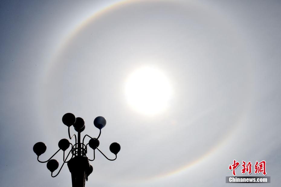 8月20日11时多,中俄最大界湖兴凯湖上空出现了日晕,彩色的光环围绕在太阳四周,炫丽多彩,日晕持续了3个小时左右,吸引了很多人都到兴凯湖畔观看,并拍照。摄影爱好者王学友正好在兴凯湖畔拍照,拍到了这一美丽的天文景象。据了解,日晕是一种天文现象。民间有“日晕三更雨,月晕午时风”的说法,到了半夜,密山市果然下起了雨。 王学友 摄