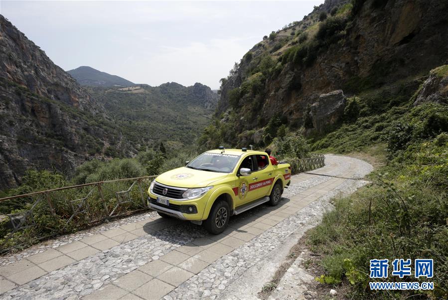 8月21日,救援车辆在位于意大利卡拉布里亚区的事发峡谷行驶。 位于意大利南部卡拉布里亚区的一处峡谷20日因为暴雨突发洪水,造成峡谷内至少10名登山爱好者死亡。 新华社发(阿尔贝托·林格里亚 摄)