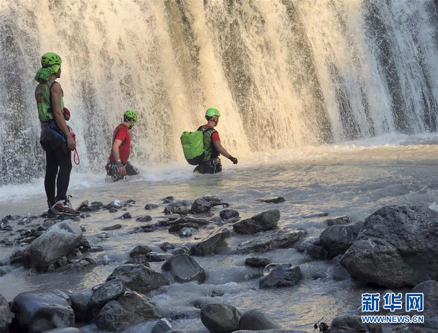 8月21日,救援人员在位于意大利卡拉布里亚区的事发峡谷搜救。 位于意大利南部卡拉布里亚区的一处峡谷20日因为暴雨突发洪水,造成峡谷内至少10名登山爱好者死亡。 新华社发