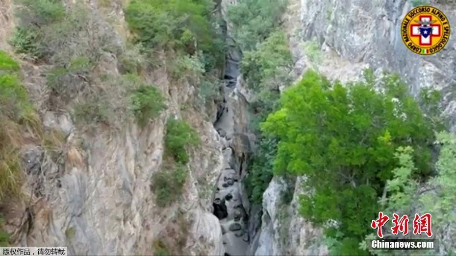 意大利南部峡谷暴雨引发山洪 一登山队伍被冲散