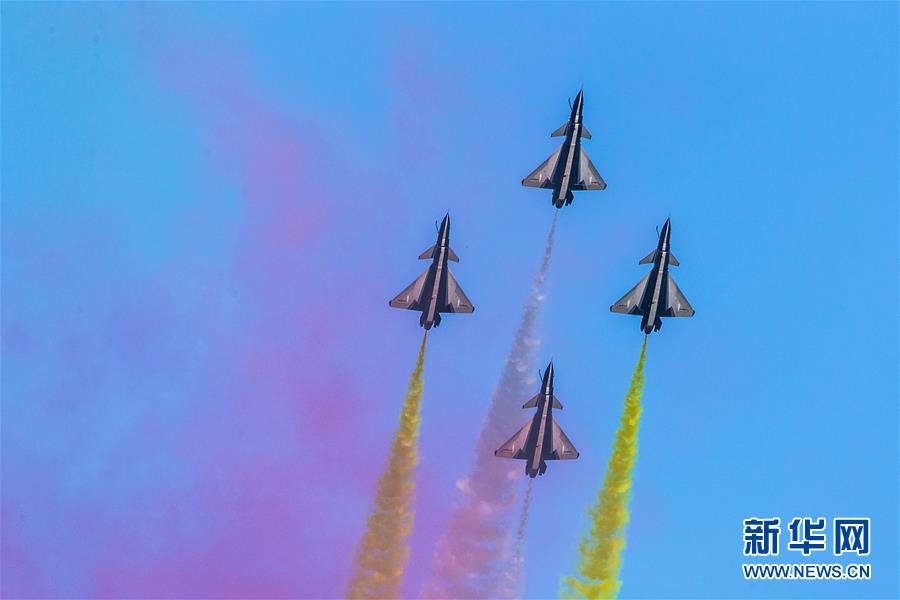 8月24日,在俄罗斯莫斯科州库宾卡市举行的国际军事技术论坛上,中国空军八一飞行表演队进行飞行表演。 当地时间24日14时55分,随着红、白、蓝三色涂装的6架歼-10表演机依次升空,中国空军八一飞行表演队在俄罗斯国际军事技术论坛上精彩亮相。 新华社记者白雪骐摄