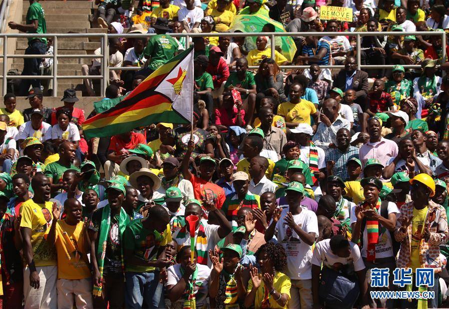 8月26日,在津巴布韦首都哈拉雷国家体育场,人们在总统就职仪式上欢呼庆祝。 新华社发(肖恩·朱萨摄)