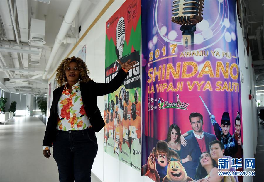 希尔德介绍2017年斯瓦希里语配音大赛的情况(8月14日摄)。 新华社记者 罗晓光 摄