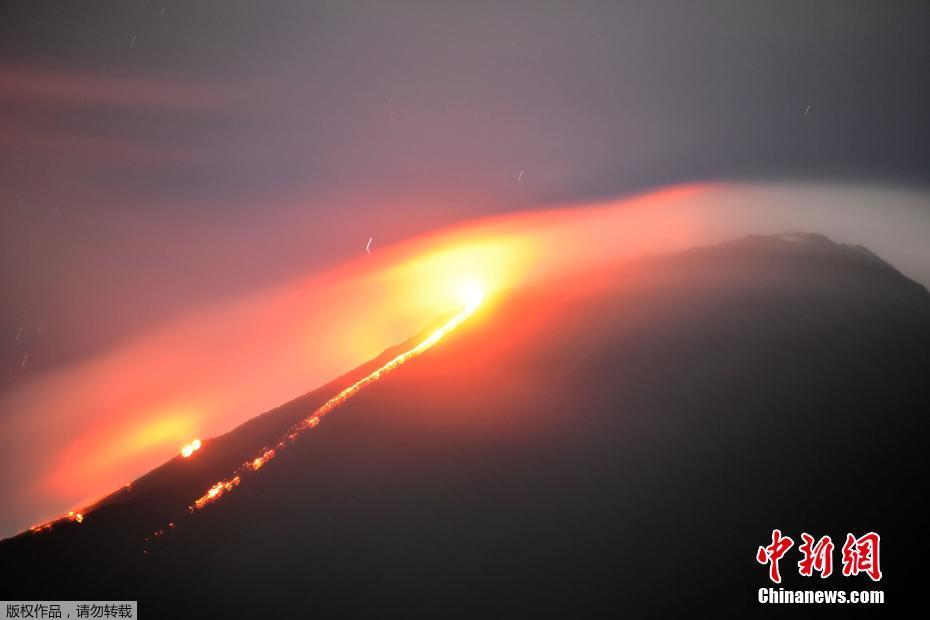 危地马拉帕卡亚火山喷发照亮夜空