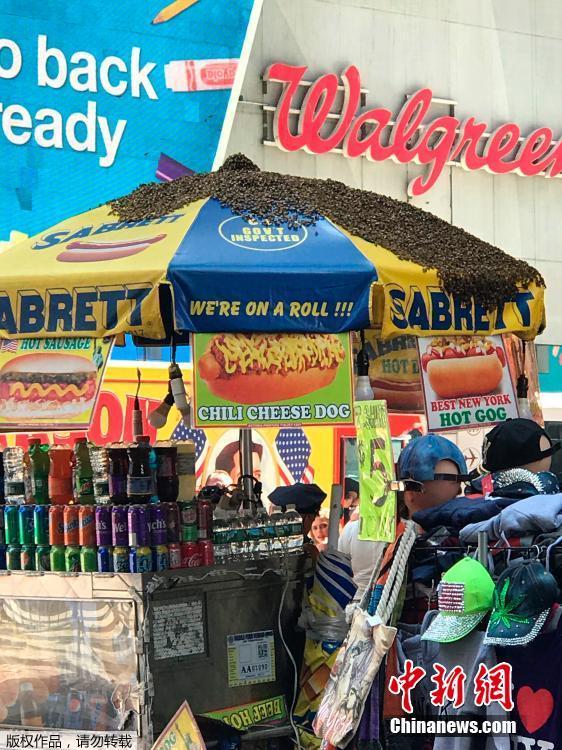 纽约时报广场热狗摊引来成群蜜蜂 行人纷纷躲避