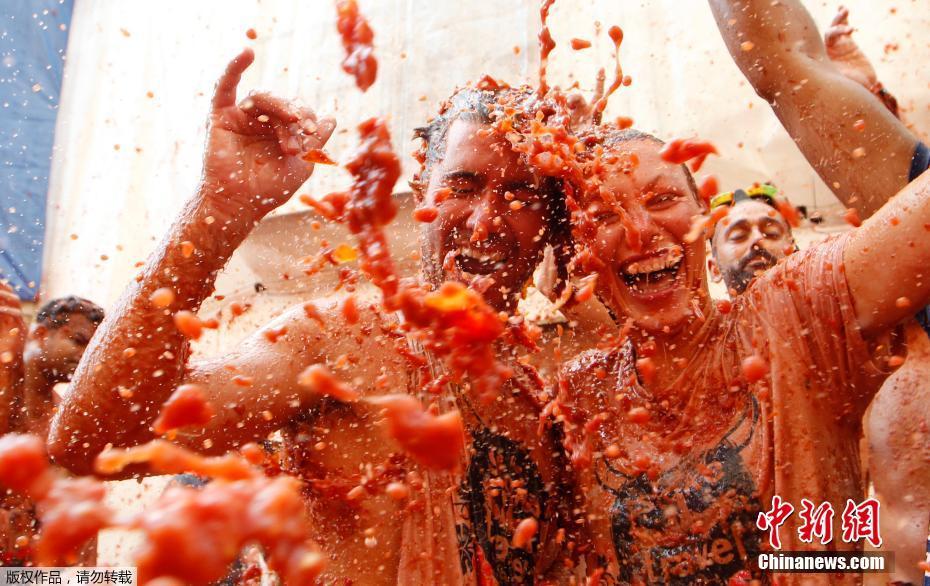 当地时间8月29日,西班牙瓦伦西亚地区布尼奥尔小镇举行一年一度的“番茄节”,人们互相扔番茄,场面嗨翻天。活动期间,卡车拖来160吨番茄,供约2万人进行长达一小时的大战。西班牙西红柿节始于1945年,每年8月的最后一个星期三在布尼奥尔小镇举行,这一年度活动已成为当地的一大旅游看点。