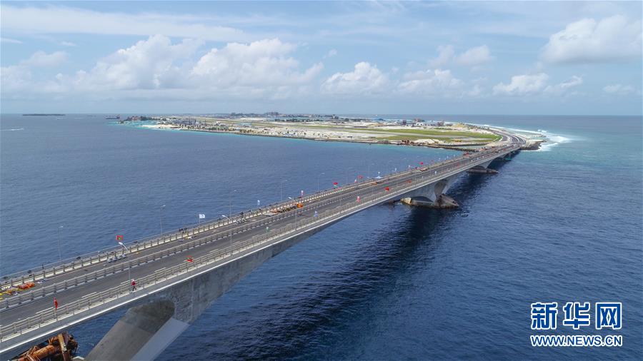 这是8月30日拍摄的即将开通的中马友谊大桥。 中国援建的中马友谊大桥30日晚正式开通。新华社发(王明亮摄)