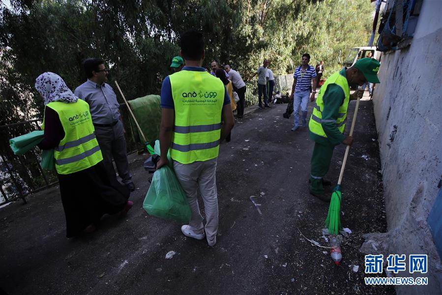 8月30日,在阿尔及利亚首都阿尔及尔,志愿者在街头清理垃圾。 新华社发