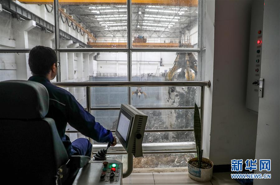 2018年8月19日,在埃塞俄比亚首都亚的斯亚贝巴的雷皮垃圾发电厂,一名工作人员操作机械投料。由中国企业修建的埃塞俄比亚第一座垃圾发电厂19日正式竣工。新华社记者吕帅摄