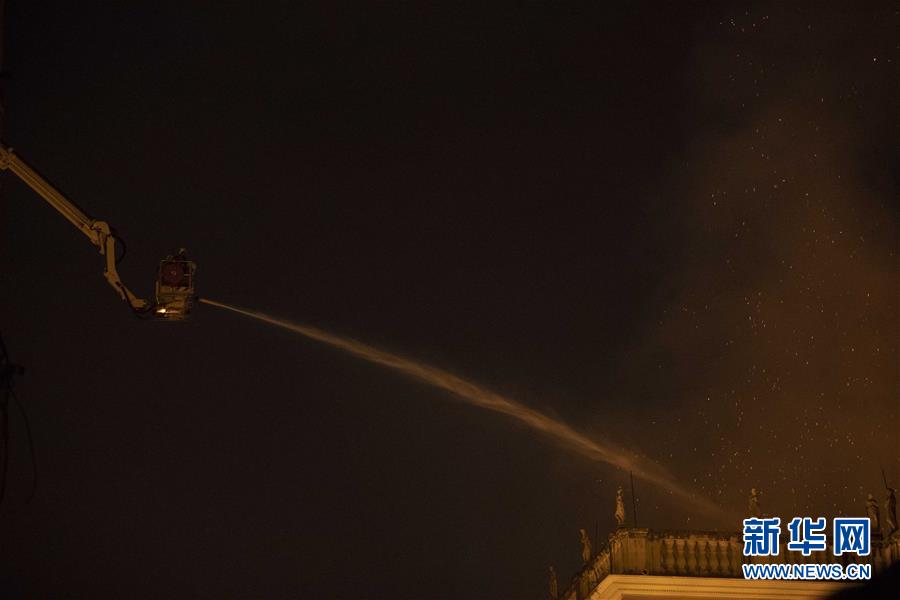 9月2日,在巴西里约热内卢,消防员在火灾现场灭火。 新华社记者李明摄