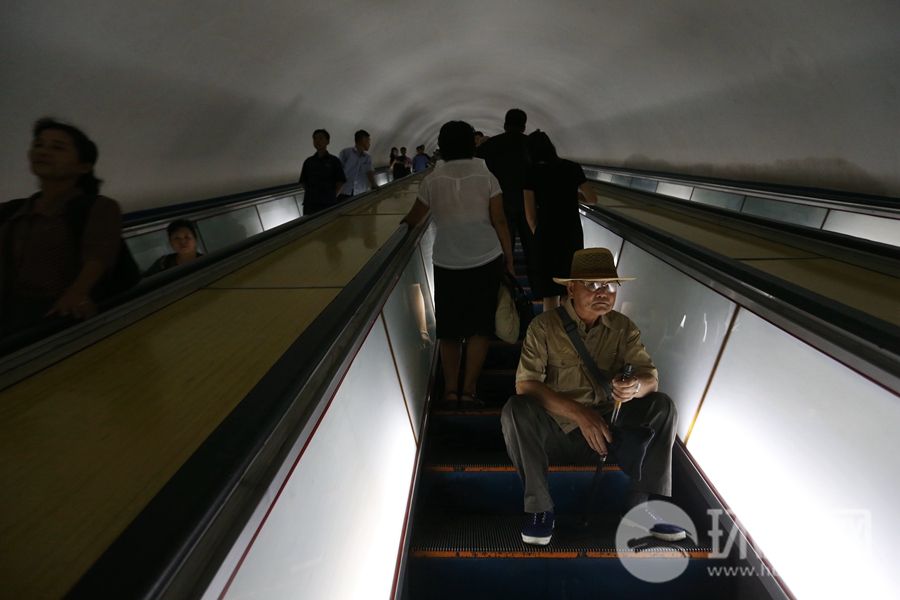 平壤实拍:市民可乘地铁出行 地铁深达110多米