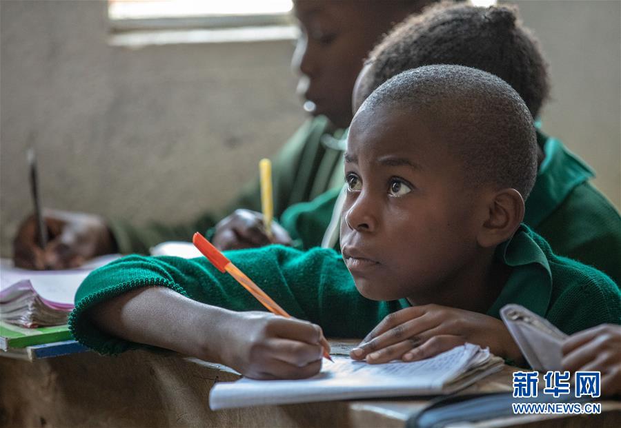 9月7日,在肯尼亚首都内罗毕,科达造梦小学的学生在上课。