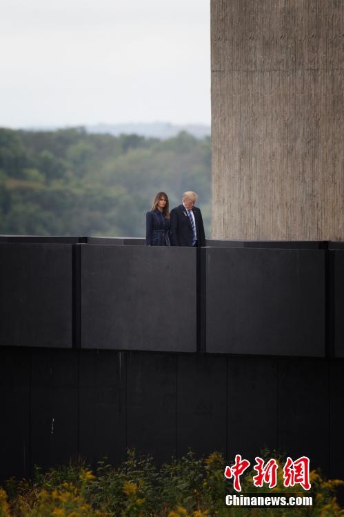 当地时间9月11日,美国总统特朗普和夫人梅拉尼娅在位于宾夕法尼亚州尚克斯维尔镇的93号航班国家纪念馆出席“9·11”事件17周年纪念活动。中新社记者 廖攀 摄