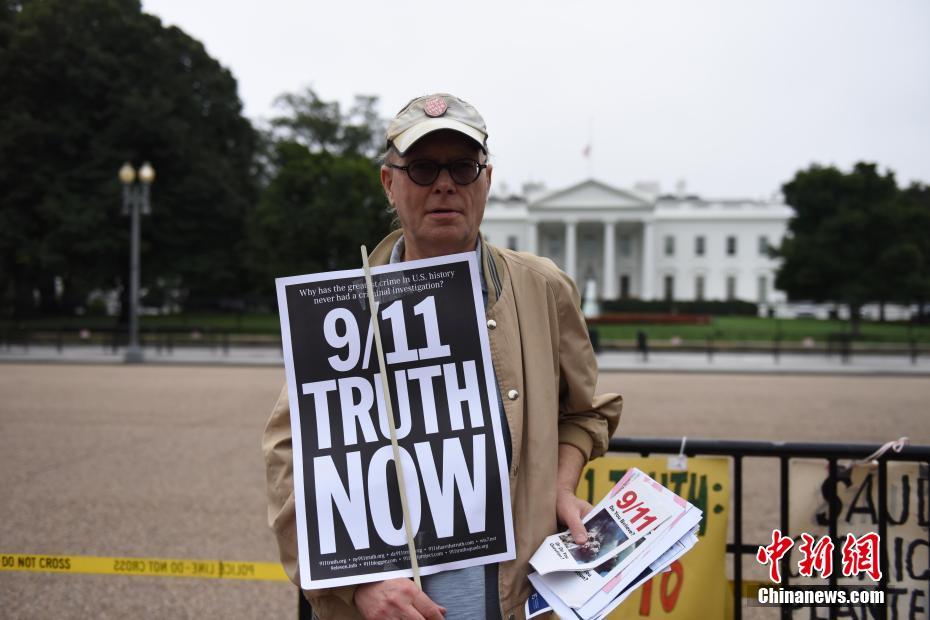 当地时间9月11日,美国民众在白宫门前呼吁调查“9·11”事件真相。中新社记者 邓敏 摄