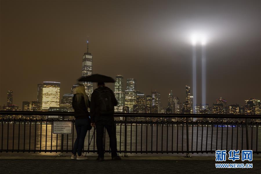 纽约“纪念之光”点亮 纪念“9·11”事件17周年
