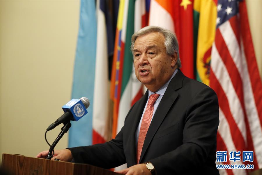 9月11日,在位于纽约的联合国总部,联合国秘书长古特雷斯向记者发表讲话。 新华社记者李木子摄