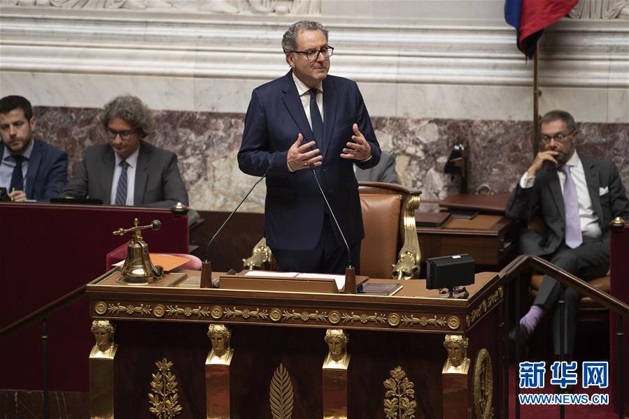9月12日,在位于法国巴黎的国民议会,理查德·费朗当选后发表讲话。 法国国民议会(议会下院)12日通过无记名投票方式选举议会多数派共和国前进党议员理查德·费朗为新国民议会议长。新华社发(杰克·陈摄)