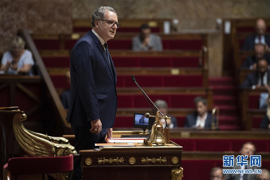 9月12日,在位于法国巴黎的国民议会,理查德·费朗当选后发表讲话。 法国国民议会(议会下院)12日通过无记名投票方式选举议会多数派共和国前进党议员理查德·费朗为新国民议会议长。新华社发(杰克·陈摄)