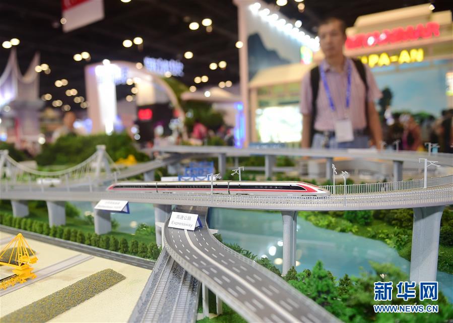 9月13日,在广西南宁国际会展中心,观众在参观中国高铁模型。