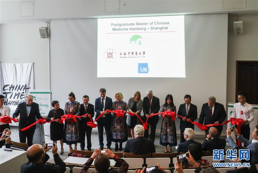 9月12日,在德国汉堡,嘉宾为上海-汉堡中医研究生项目开学典礼暨中医养生文化展开幕式剪彩。 首届上海-汉堡中医研究生项目开学典礼暨中医养生文化展开幕式12日在德国汉堡举行。上海-汉堡中医研究生项目主要针对欧洲西医医生,学制为3年,完成学业者将获得上海中医药大学颁发的相关专业医学硕士学位。汉堡中医养生文化展将从9月12日持续至16日,通过经络养生、运动养生、环境养生、饮食养生4个主题的展示让当地民众更多了解中医药文化。 新华社记者单宇琦摄