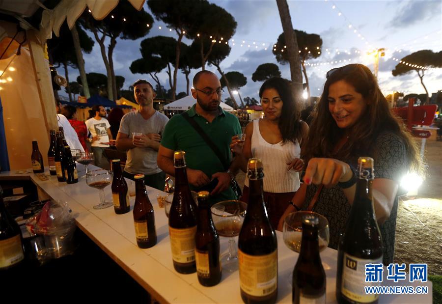 9月14日,在黎巴嫩首都贝鲁特举办的国际啤酒节上,来宾品尝各种啤酒。 新华社发(比拉尔·贾维希摄)