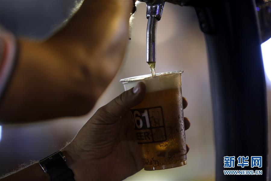 9月14日,在黎巴嫩首都贝鲁特举办的国际啤酒节上,工作人员盛啤酒。  新华社发(比拉尔·贾维希摄)