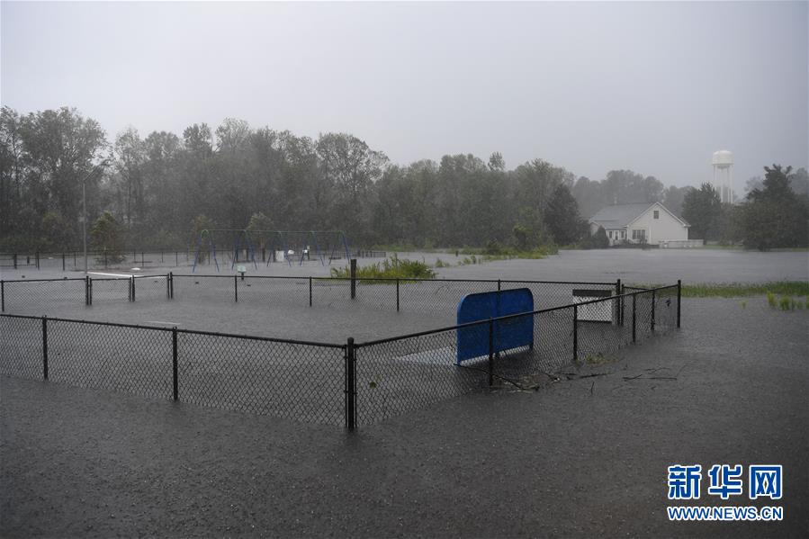 9月14日,美国北卡罗来纳州河湾镇的一处公共活动场所被积水淹没。 新华社记者刘杰摄
