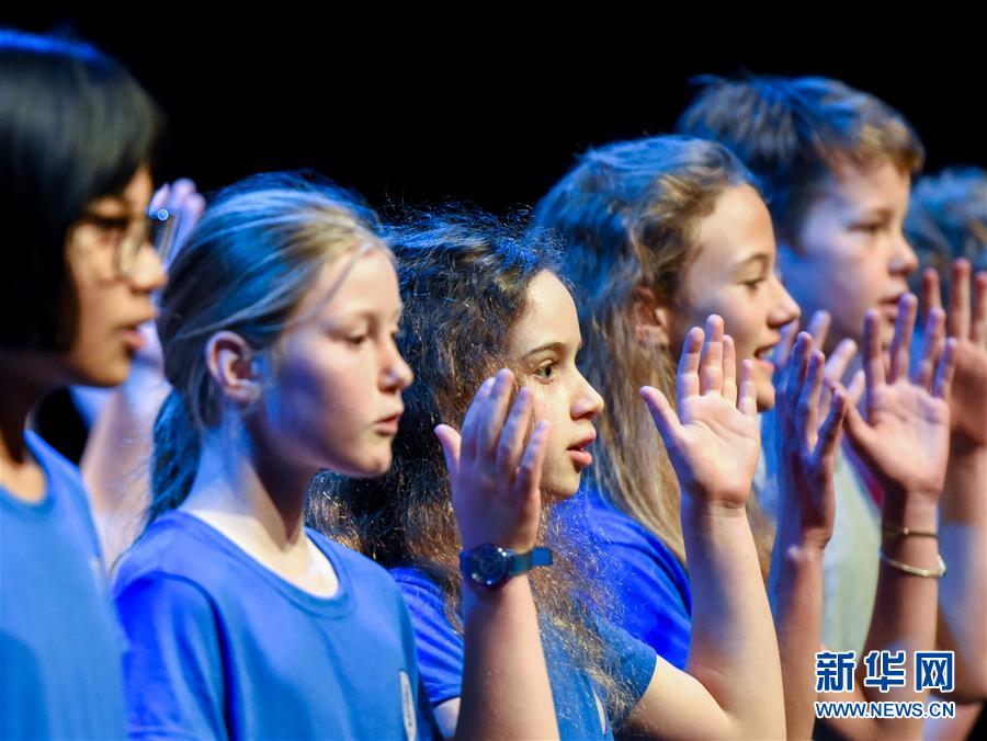 9月16日,在新西兰首都惠灵顿的国家博物馆音乐厅,惠灵顿凯尔本学校合唱团的孩子们演唱歌曲。新华社记者郭磊摄