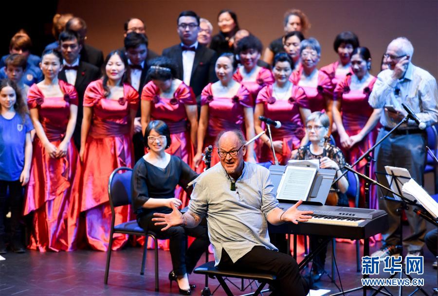 9月16日,在新西兰首都惠灵顿的国家博物馆音乐厅,惠灵顿社区合唱团与惠灵顿东方之声合唱团成员准备演唱《月亮代表我的心》。新华社记者郭磊摄