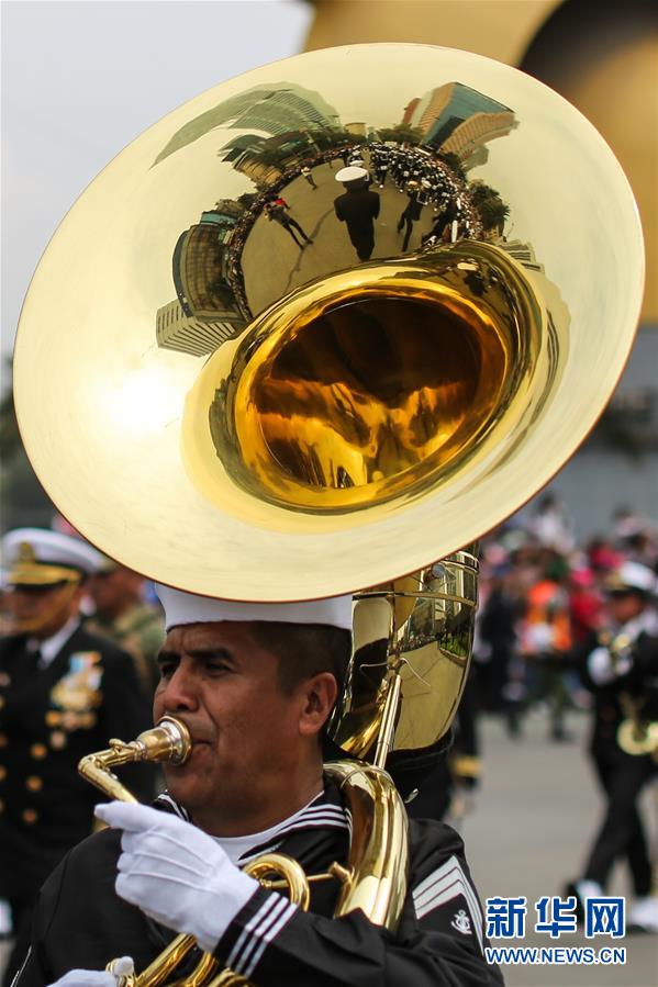 9月16日,在墨西哥首都墨西哥城,军乐手参加独立日阅兵。 当日是墨西哥独立纪念日,墨西哥举行庆祝独立208周年阅兵。 新华社记者辛悦卫摄