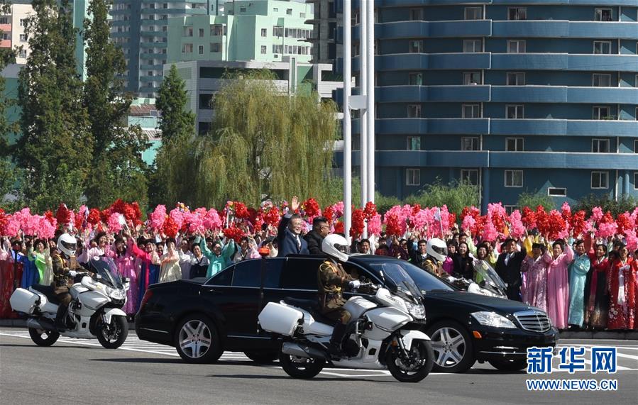 9月18日,韩国总统文在寅与朝鲜国务委员会委员长金正恩乘车进入平壤市区。