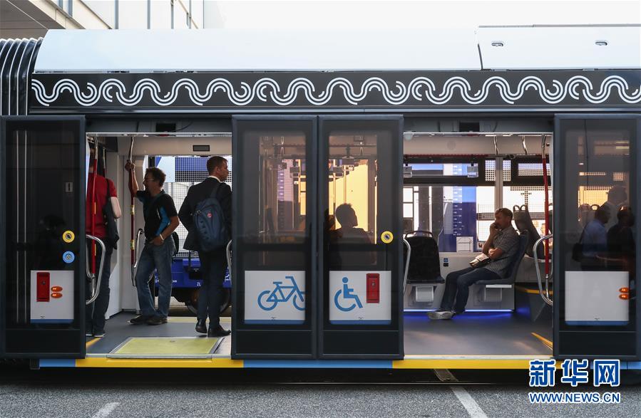 9月18日,在德国首都柏林,参观者体验一辆展出的列车。 新华社记者单宇琦 摄