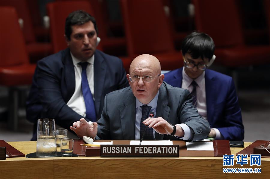 9月18日,在位于纽约的联合国总部,俄罗斯常驻联合国代表涅边贾(前)在安理会叙利亚政治和人道局势公开会上发言。 新华社记者 李木子 摄